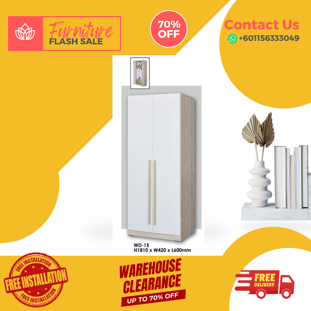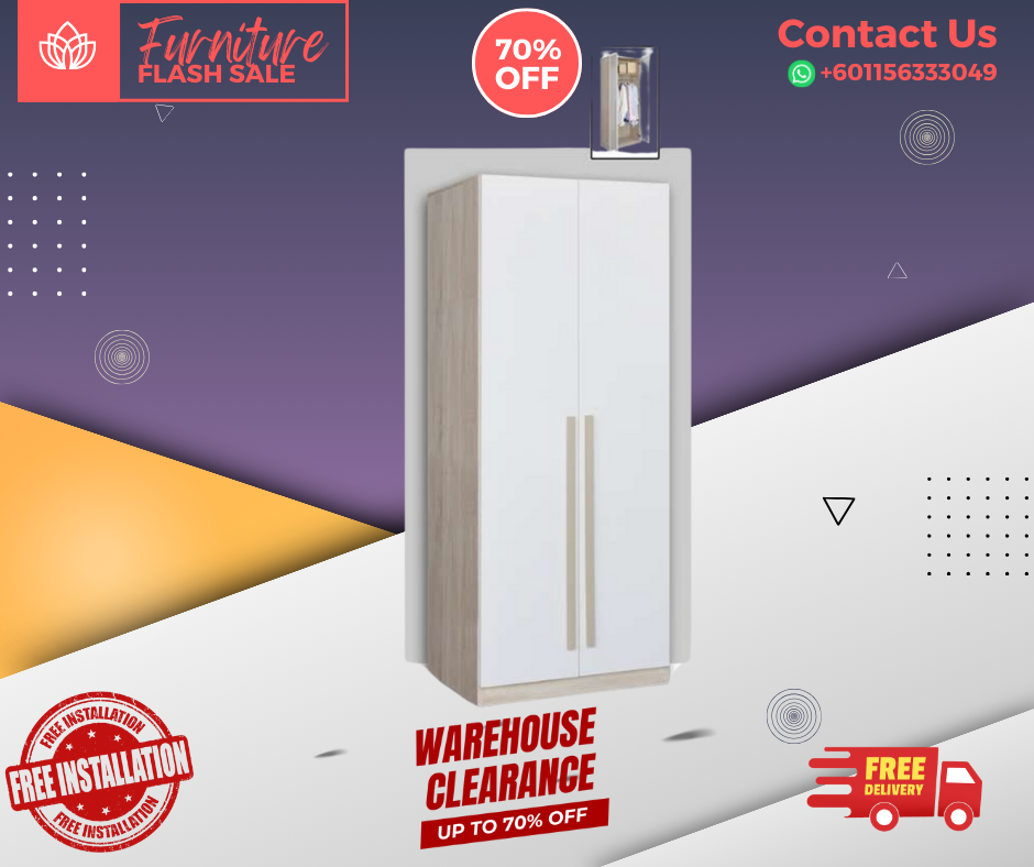 2 Door Wooden Wardrobe/ Multifunctional Wardrobe/ Almari Baju/ Wooden Wardrobe/ Kabinet/ Cabinet/ Almari Pakaian/ Almari Murah/ Almari/ Free Installation