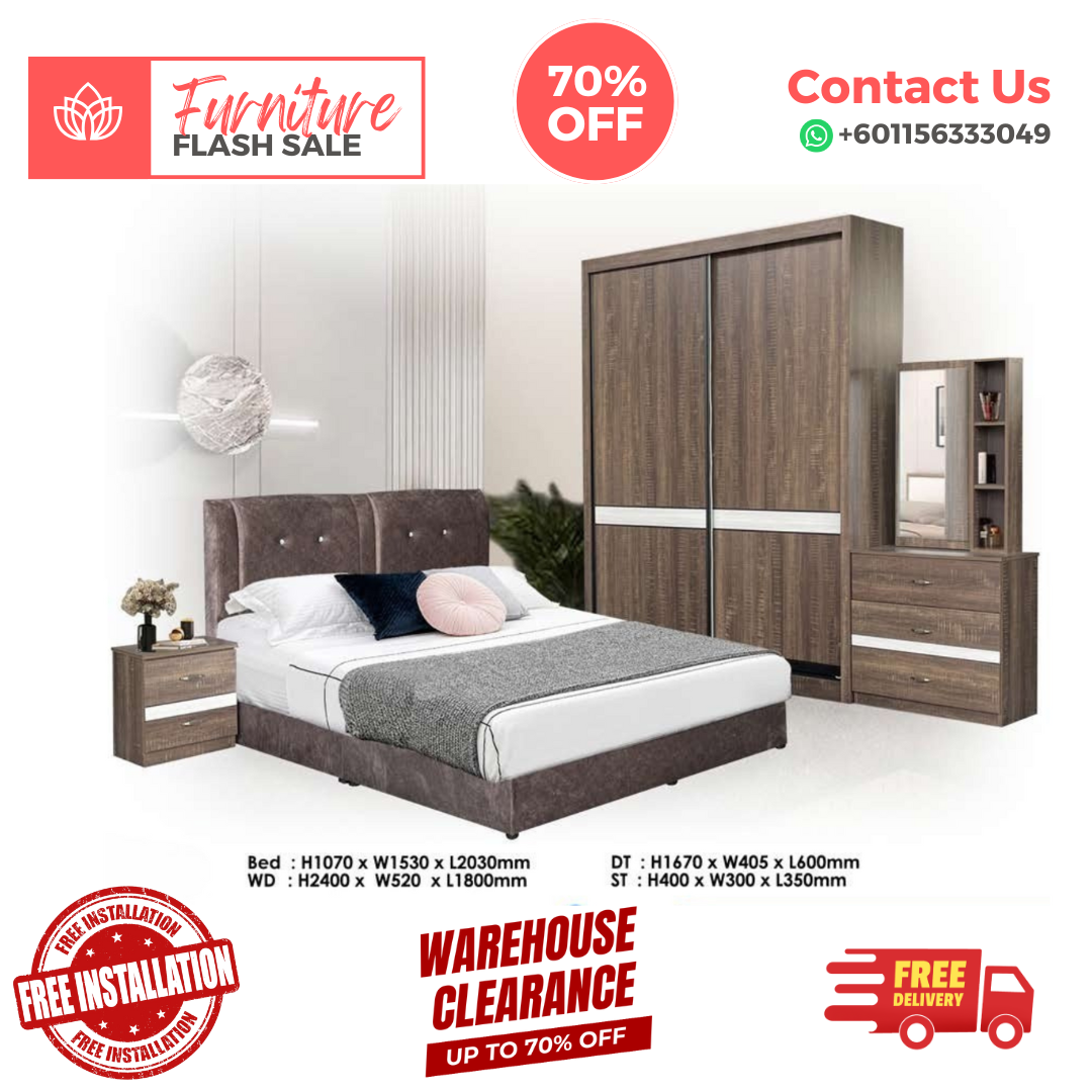 Bedroom Set 4 Pcs/ Bedroom Set/ Bed Frame/ Wardrobe/ Dressing Table/ Side Table/ Free Installation