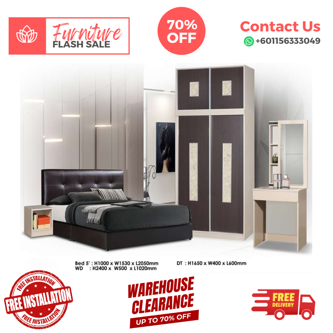 Tags: Bed, Bed Frame, Bedroom Set, Divan, Divan set, Dressing Table, Full Bed Set, Full Divan Set, Katil, King Bed, Side Table, Wardrobe