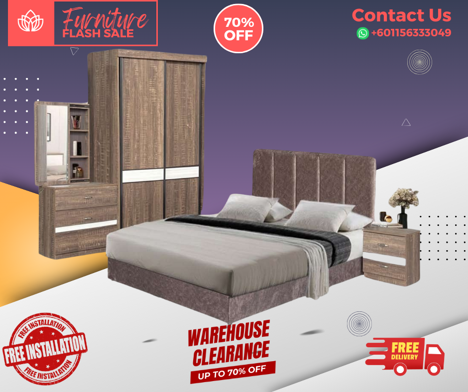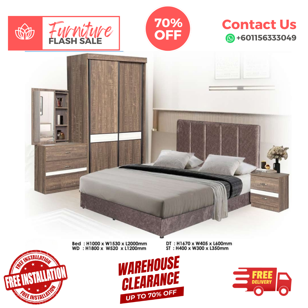 Bedroom Set 4 Pcs/ Bedroom Set/ Bed Frame/ Wardrobe/ Dressing Table/ Side Table/ Free Installation (Copy)