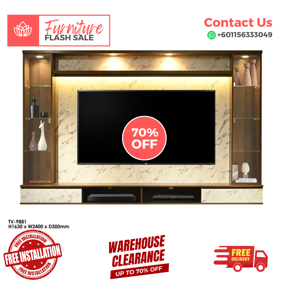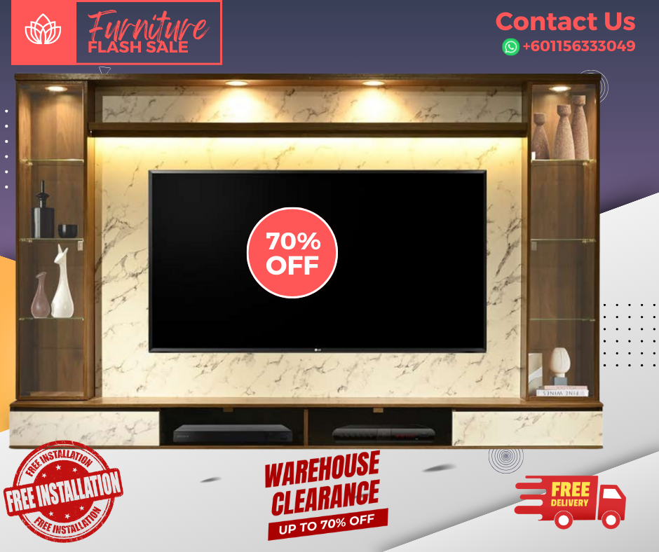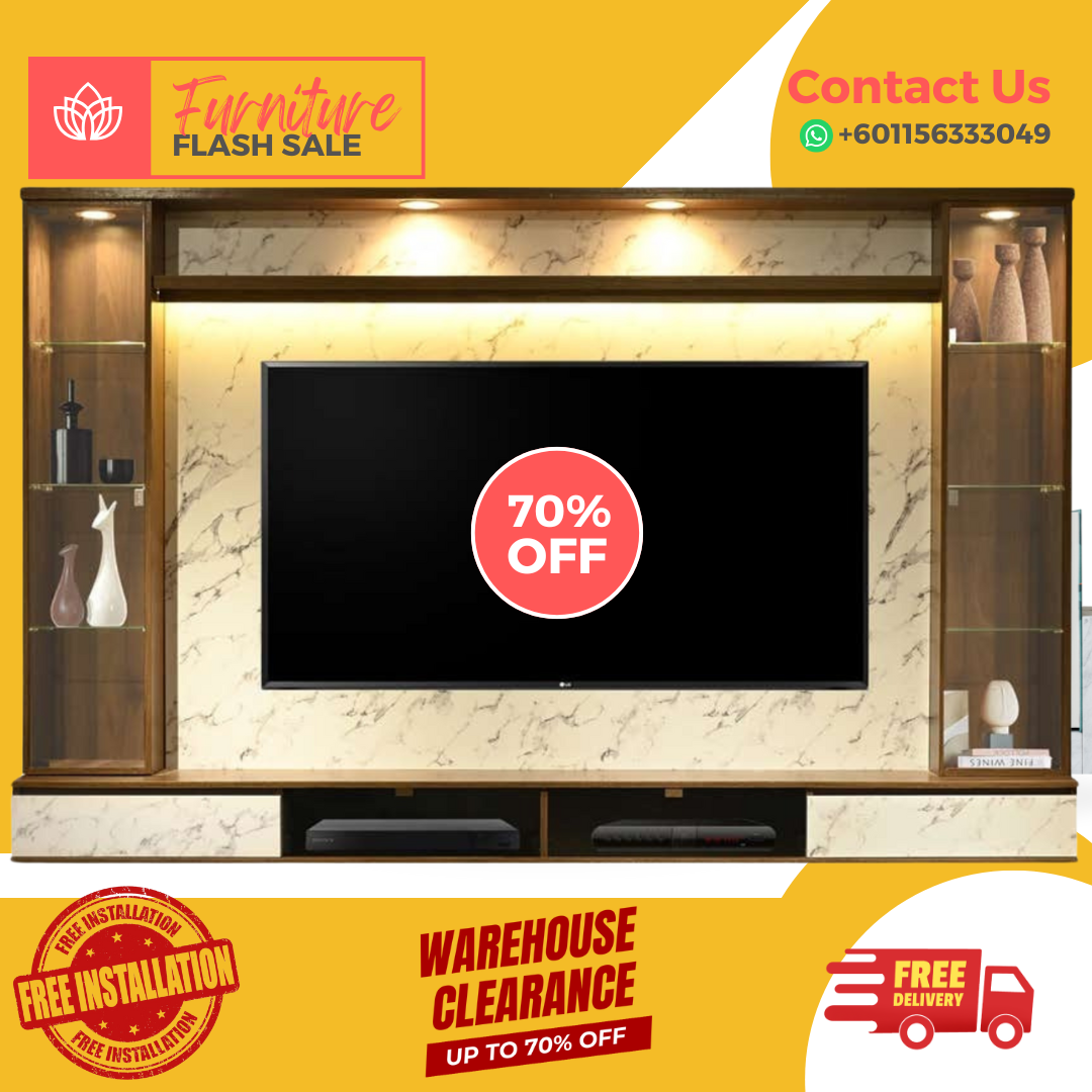 TV Cabinet 8 Feet/ Free Installation/ Modern Tv Cabinet/ Trendy TV Cabinet Designs/ Plug/ LED/ Glass Shelf/TV Rack